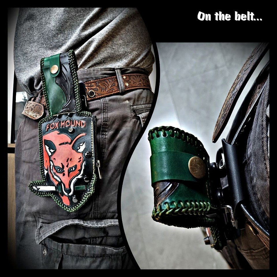 Vietnam War themed. Death from above insignia. Tooled and dyed leather. Round leather lace edged. Holds upto £45 in pound coins. 1 x card slot for bank card etc. Metal belt buckle clip to create a belt loop. Metal hardware. See pics for more specs. Photographed containing £40 + 5 lead buttons and bank card. As described, comes in at a weight of 625g.